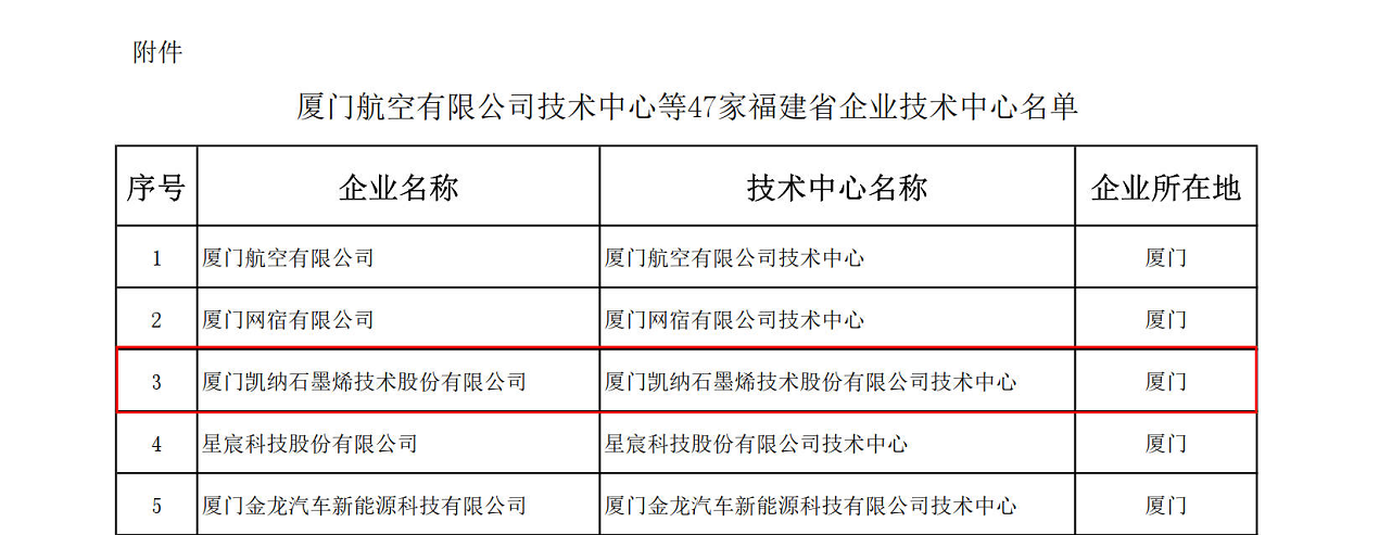 2024年12月27日,福建省工業和信息化廳等七部門公布了福建省企業技術中心認定結果,廈門凱納石墨烯技術股份有限公司技術中心正式被認定為福建省省級企業技術中心,這一成果標志著凱納的科技創新工作邁上新臺階。