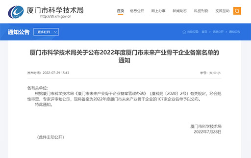 喜訊:廈門凱納入選「2022年度廈門市未來產業骨干企業」