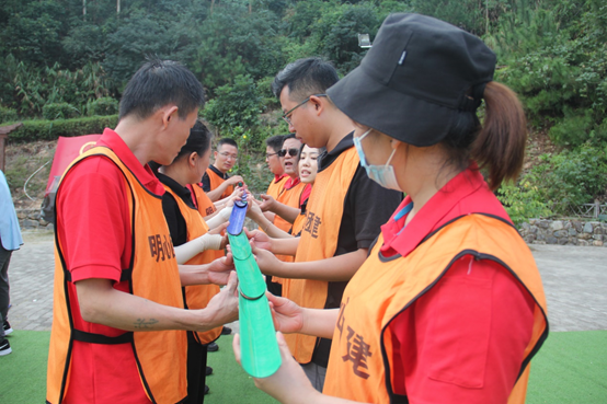 此次團建活動選擇在廈門同安頂上生態風景區舉行,經過一個半小時的車程后,我們到達目的地,這里風景優美、空氣清新,在教官的指導下,小伙伴們分成10個小組。每隊選出1名隊長,起隊名、畫隊徽、喊口號,每一隊的風采,或激動,或歡樂,在一聲聲吶喊中自然散發了出來。