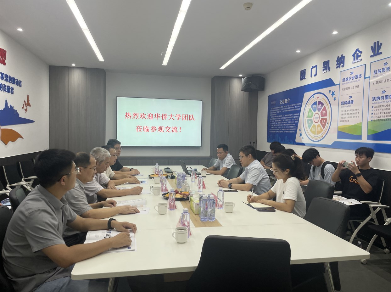 6月30日,在華僑大學黨委副書記劉斌,材料學院院長王士斌、黨委書記蔡浩、陳國華教授帶隊下,材料學院創新創業團隊一行到廈門凱納石墨烯技術股份有限公司開展“訪企拓崗促就業”活動,本次活動雙方就“就業平臺搭建”、“專業實習合作”、“校外畢設基地”等進行深入探討。同時,凱納公司總經理方崇卿(華大碩士研究生實踐導師)和副總經理、技術總監洪江彬(華大碩士研究生實踐導師),公共事務負責人林麗萍就凱納發展規劃、產教融合、技術創新、公司就業待遇等方面進行了介紹。